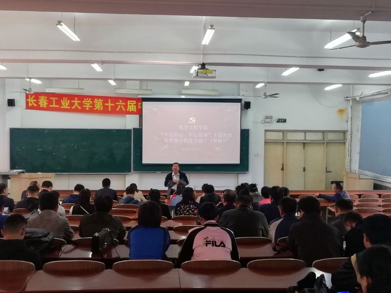 党委在综合楼一楼教室开展“不忘初心、牢记使命”主题教育活动之观看警示教育专题片《警醒》,学院全体教职工参加了这次活动。