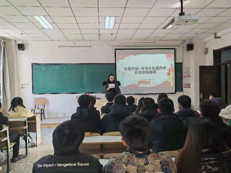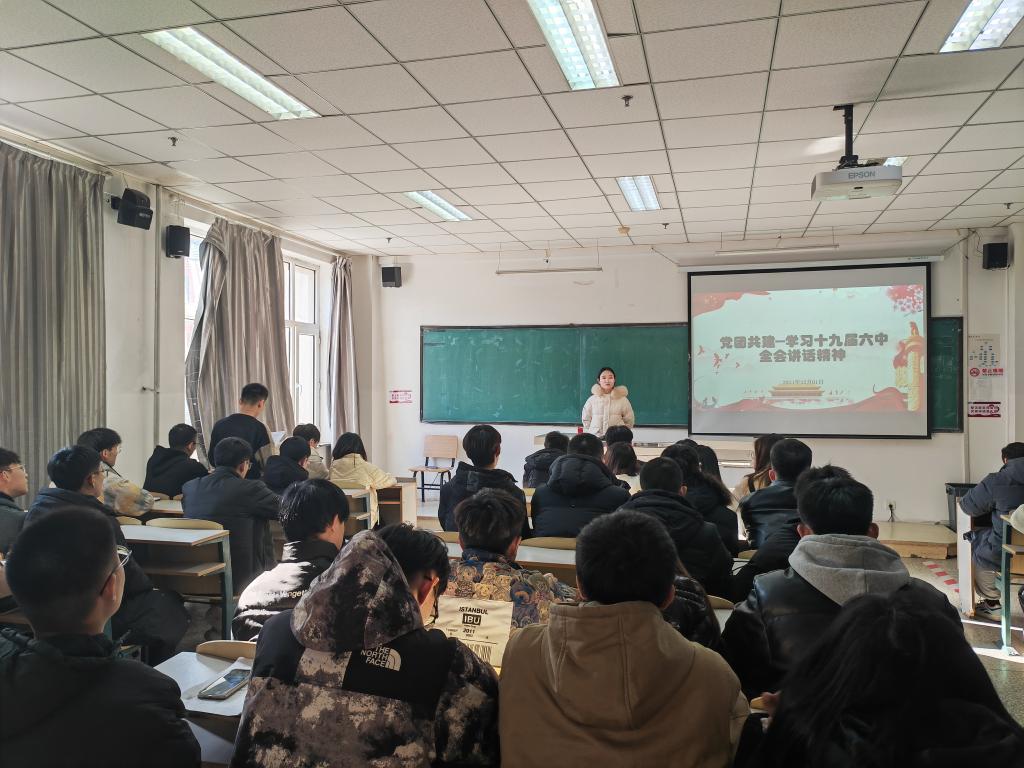 开展了学习党的十九届六中全会讲话精神的主题活动,本次活动由学生党支部书记、2019级辅导员李秀绒主持,辅导员王明慧、2019级全体学生党员与190601团支部参加了本次活动。