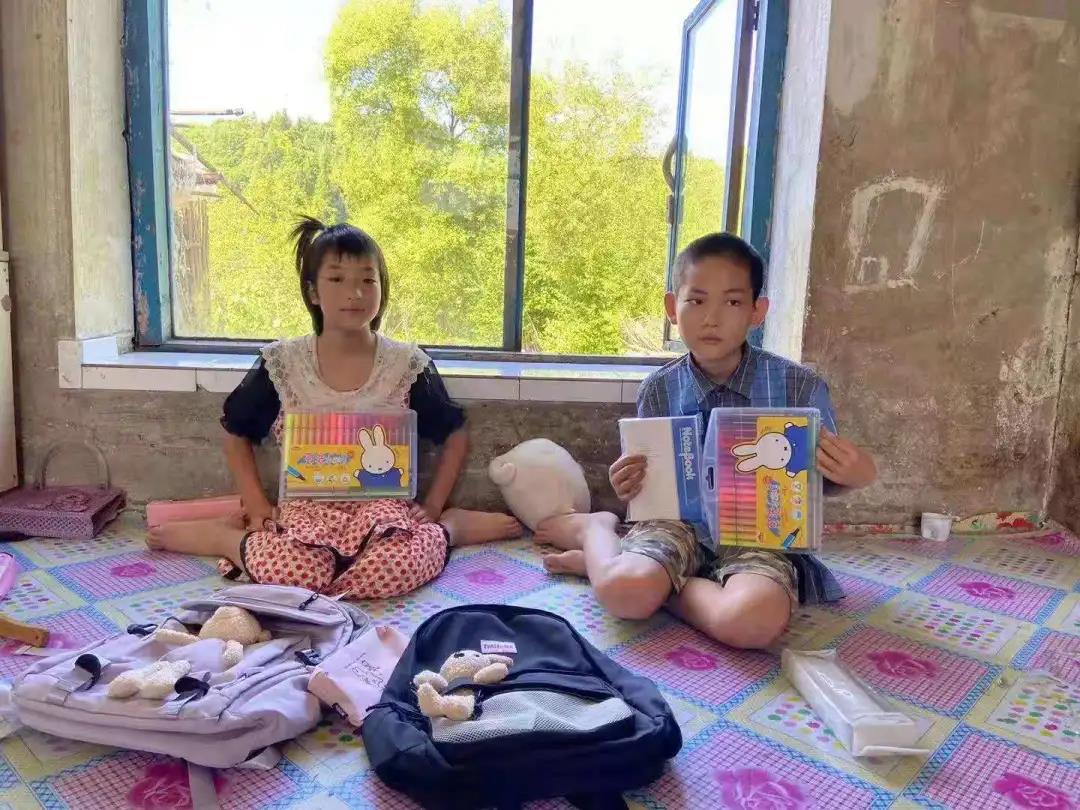 团队成员带上了书包、文具、水彩笔等众多学习用品来到小朋友的家里,与她们分享学习和校园生活。