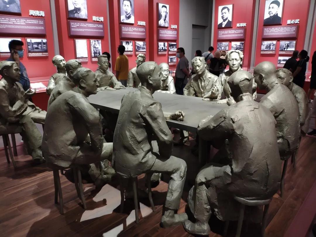 小分队首先来到中国共产党第一次全国代表大会纪念馆,整个场馆气派又不失庄严。漫步在纪念馆展览厅,整个展厅,以“初心使命”贯穿全篇,分为序厅、“前仆后继、救亡图存”、“民众觉醒、主义抉择”、“早期组织、星火初燃”、“开天辟地、日出东方”、“砥砺前行、光辉历程”和尾厅7个展厅区域。