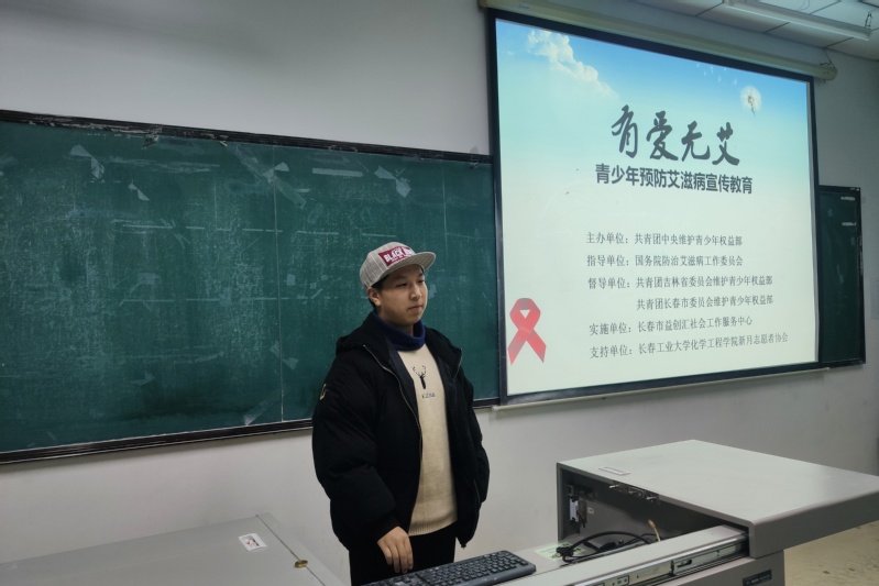 新闻网讯(通讯员刘雨婷 郭一凡)为提高同学们的防艾意识,增进对艾滋病知识的了解,消除对艾滋病患者的歧视。11月16日,新月志愿者协会在南湖校区科研楼316教室开展“有爱无艾”——青少年预防艾滋病宣传教育讲座。活动由团中央维护青少年权益部主办,团吉林省委和团长春市委维护青少年权益部督导,长春市益创汇社会工作服务中心实施。讲座由新月志愿者协会副会长段煜主讲.