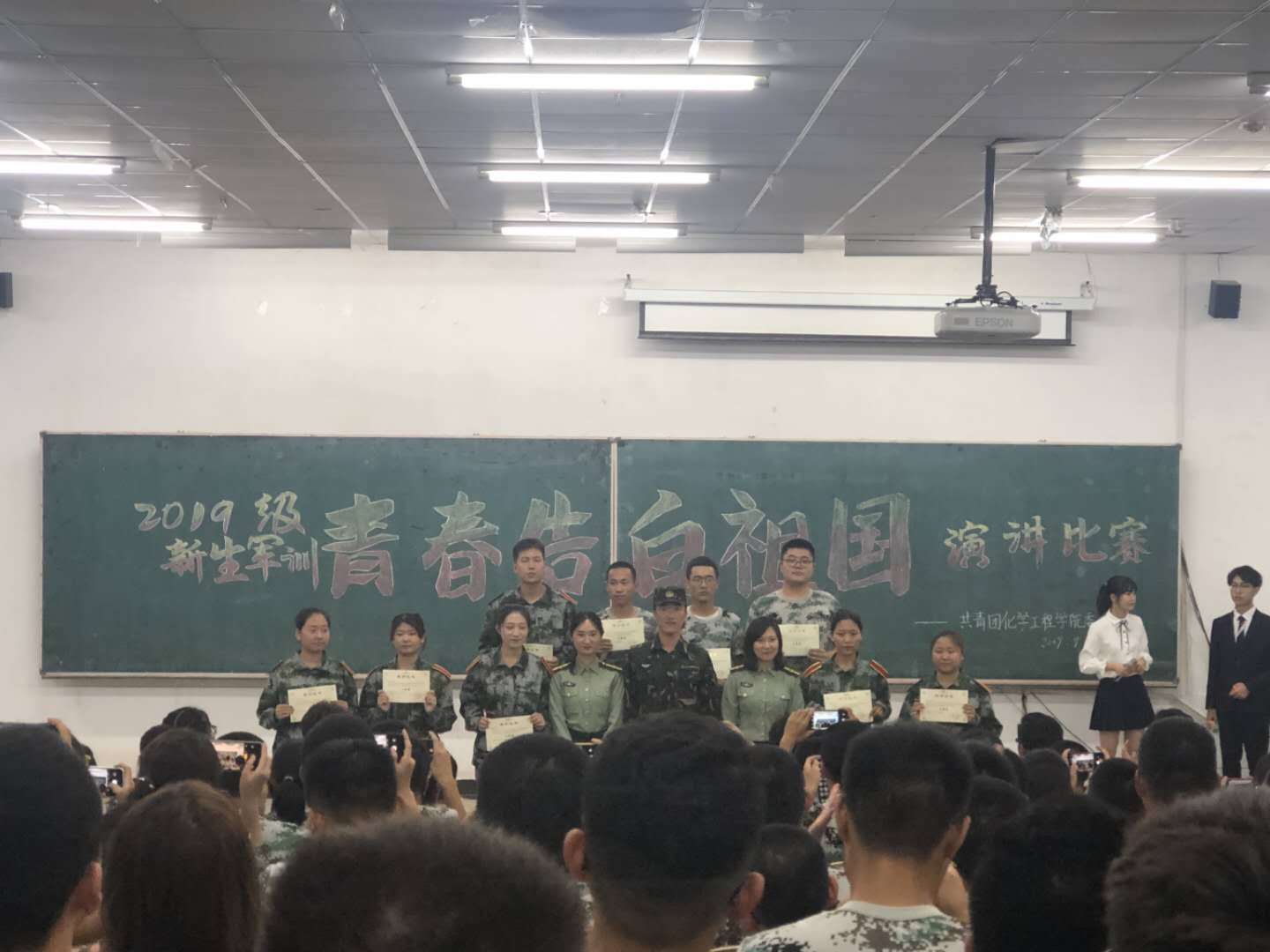 在北湖校区西阶102教室举行2019级新生“青春告白祖国”主题演讲比赛。学校北湖校区军训教官孟令奇,2019级新生辅导员张慧、李秀绒及全体新生参加了活动。学院团学组织主要学生干部担任评委,申沛杭、刘嘉潼同学主持。