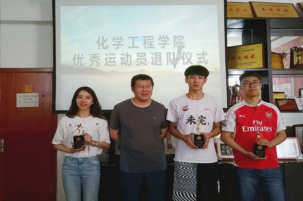 于6日在化工楼会议室举行2015级优秀运动员退队仪式。学院党委副书记曹永利、专职组织员肖芳,田径队、足球队、篮球队部分队员参加了仪式。仪式由学院团委书记杨楠主持。