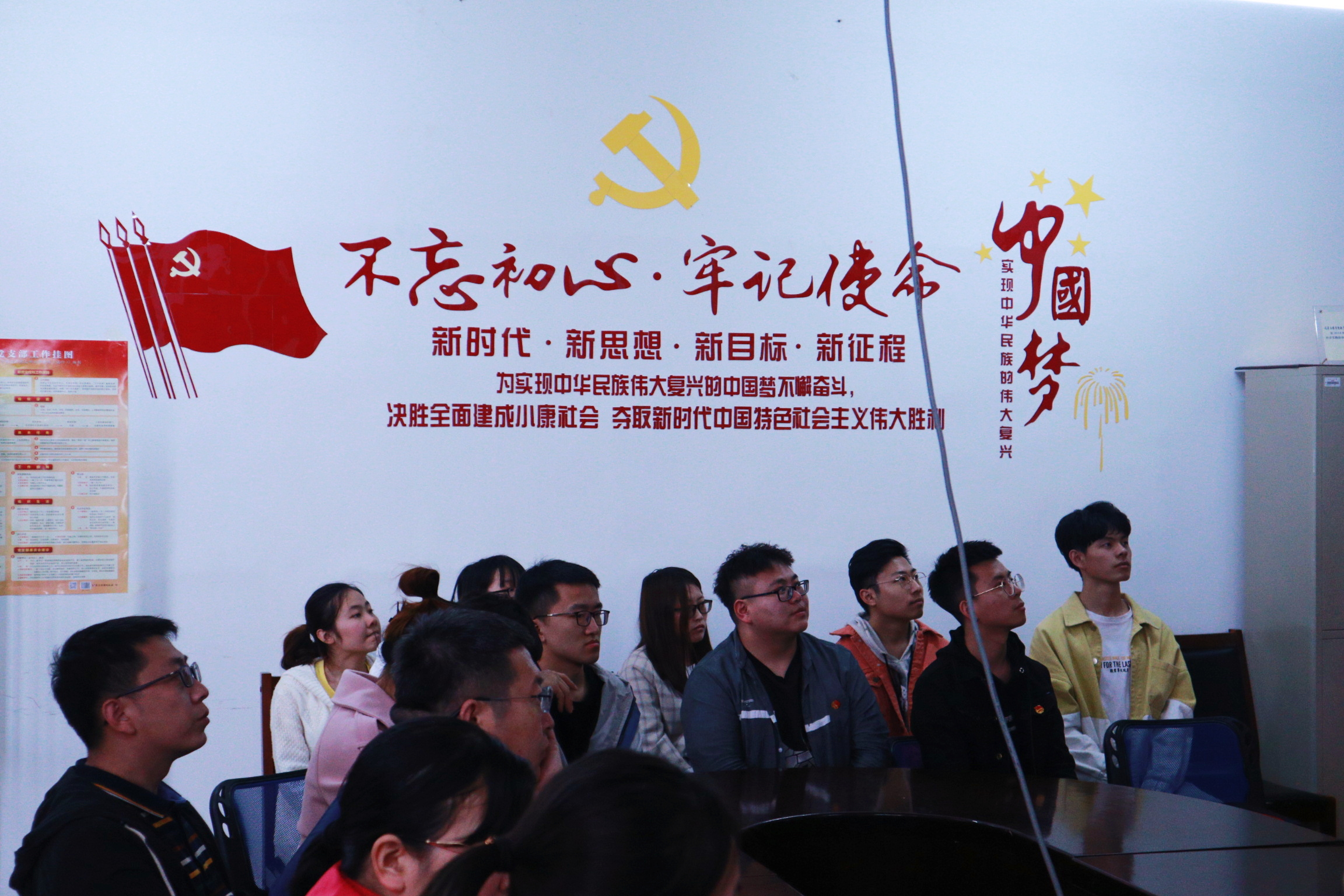 组织部分党员、优秀团员观看了大会直播。学院党委副书记曹永利、专职组织员肖芳、学生党支部书记董广通与同学们共同收看学习。