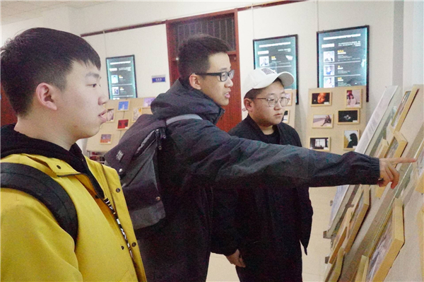 作品展上展示了吉林师范大学同学自主创意、主题精彩的不同类型作品。协会成员们在吉林师范大学老师的带领下一起参观并欣赏展会作品,互相探讨。在每个作品的主题思想,构图要素等方面上同学们各抒己见,彼此相互促进,相互交流。