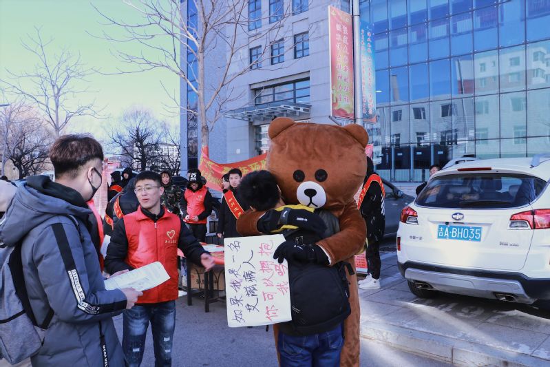 2018年“世界艾滋病日”宣传活动主题为“主动检测-知艾防艾-共享健康”。活动现场志愿者们张贴倡议书、发放防艾知识手册、共同在防艾宣传条幅上签名,为参与活动的同学系上红丝带。活动旨在倡导通过检测知晓感染状况,进而采取治疗和预防措施,控制艾滋病。活动中,志愿者装扮的玩偶手持“假如我是艾滋病人,你愿意拥抱我吗?”更是吸引到很多同学的拥抱和合影留念。志愿者也对参加活动的同学发放了防艾纪念徽章。长春广播电视台对活动给予了报道。