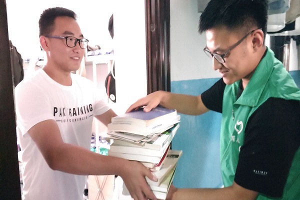 活动过程中志愿者们分成两个小组,一组在毕业生寝室收取捐赠书籍,另一组则在搭建的活动场地处开展倡导文明离校。志愿者们敲响宿舍房门,在表达来意,说明旧书回收的用途后,发现大四学长普遍有捐赠旧书的意愿但没有相应的途径。一位大四学长说:“这些书陪伴了我四年时间,如今能把它们传递给学弟学妹们用,使它们继续发挥它们的价值,这是一件很有意义的事!”。