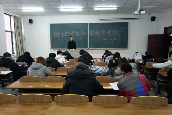 于25日在北湖校区主楼1501教室组织开展团干部理论知识测评考试。学院2017级全体团干部参加了知识测评。