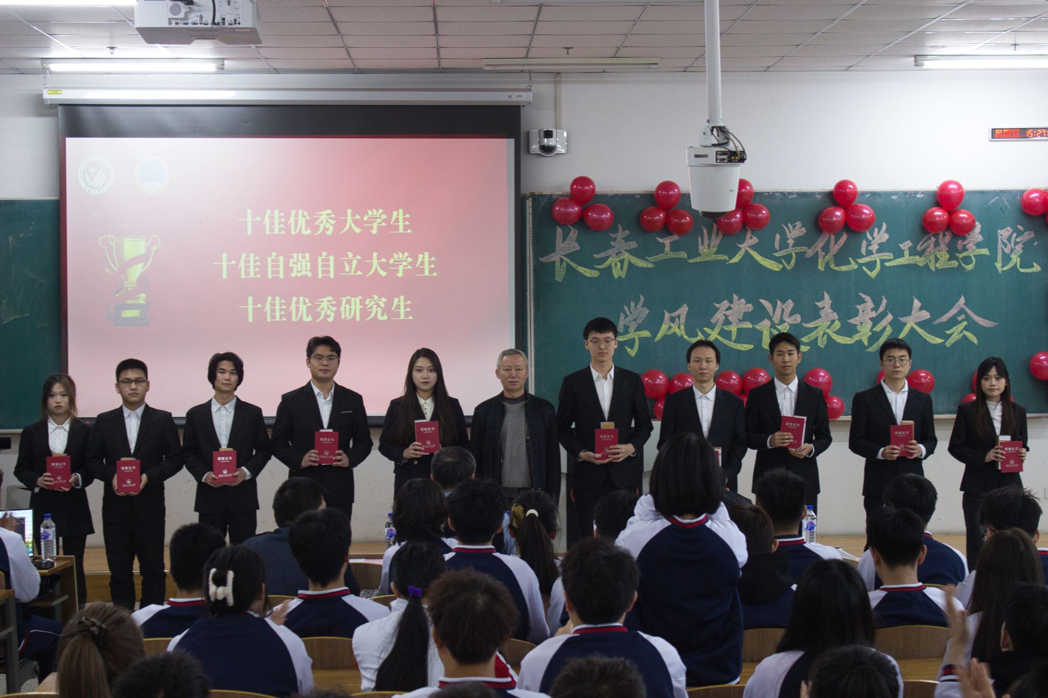 学院党委书记杨文龙出席大会,并为院十佳优秀大学生、十佳自强自立大学生、十佳优秀研究生获奖代表颁奖。