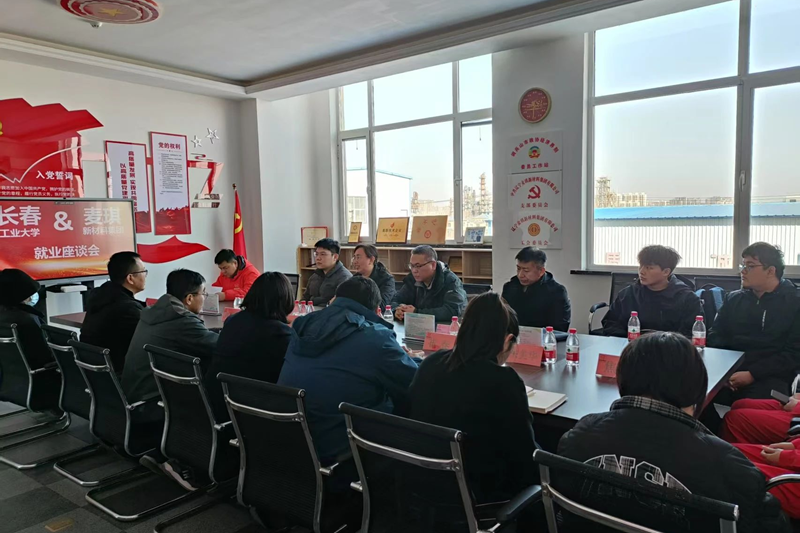 座谈会上,调兵山市市委组织部副部长桂允陆从地域文化、产业项目等角度进行城市推介,市劳动就业服务中心崔春主任解读了当地人才引进政策。麦琪集团执行董事魏丙赟详细介绍了企业发展概况、岗位需求、福利待遇及员工培养体系,并着重强调了对高分子材料、化工工艺等领域高素质人才的迫切需求。学院团委书记王珺楠介绍了目前学院大学生就业形势,提出“实习就业一体化”等协同培养建议,这一建议得到企业高度认同。此外,院企双方还就化工行业技术发展、人才培养方向等专业问题展开探讨,企业代表与学生进行了面对面交流,深入了解学生就业意向。