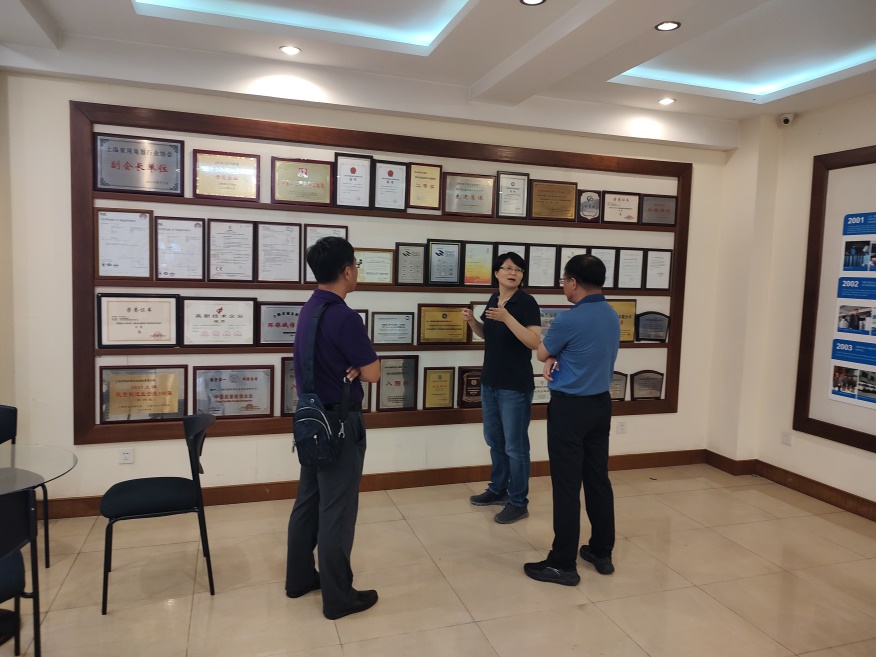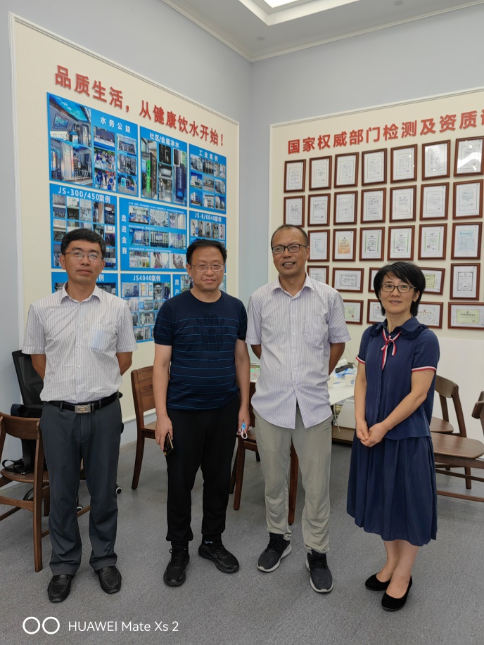 与宁波健享源新材料科技有限公司总经理腾丽华博士、宁波市鄞州区统计局主任科员马祥陆座谈