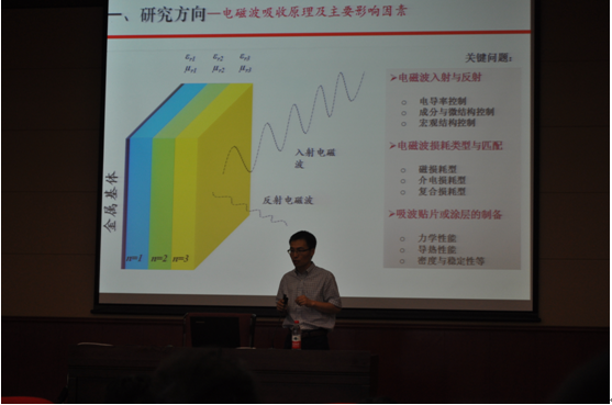 聘任仪式结束后,张雪峰教授作了题为“多尺度异质核@壳型复合材料的制备及微波电磁特性”的学术报告。