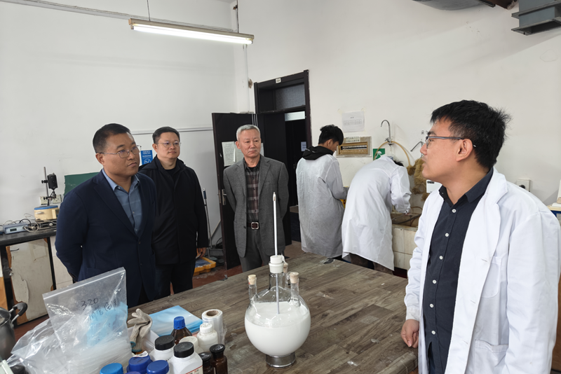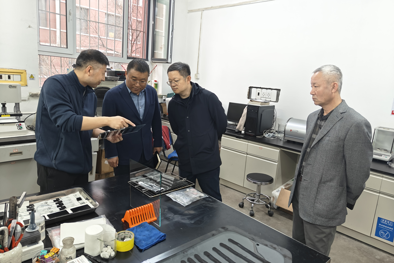 在高分子复合材料实验室,赵洲洋听取了王世伟教授关于PVB树脂及中间膜、高耐磨聚合物轴瓦等新型材料研发进展的汇报,详细询问了材料性能、应用前景及产业化推进情况。他指出,这类高性能材料具有广阔的市场潜力,实验室应进一步加强产学研协同创新,加快技术成果转化,为相关行业转型升级提供有力支撑。
