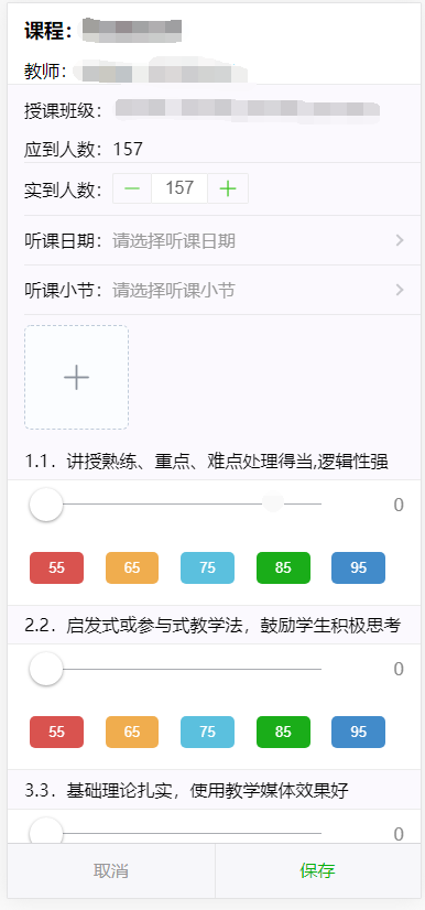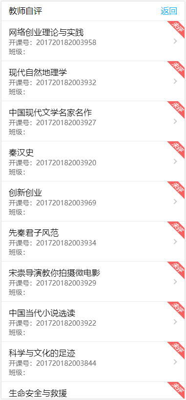 教师只有填写完成课程自评项目后,本学期才能有评教成绩
